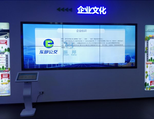 触摸台和拼接幕墙联动系统,介绍东部公交标识、企业理念和价值观;
